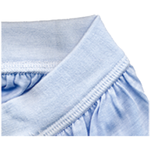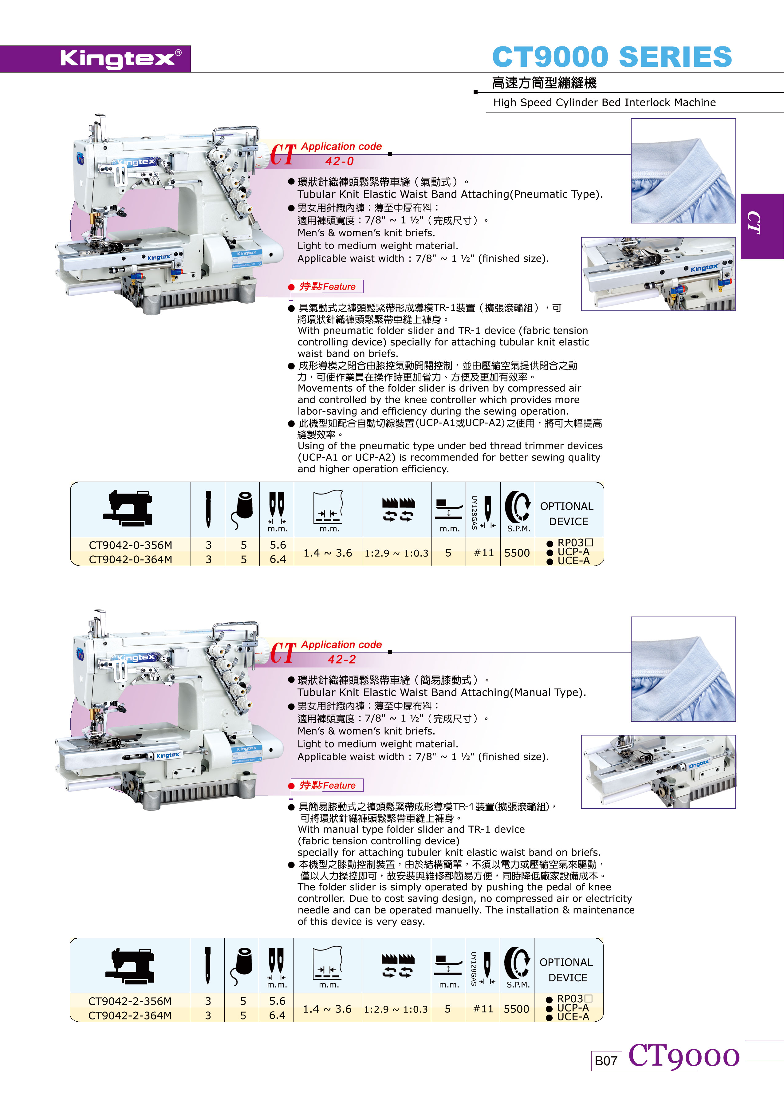 With manual type folder slider and TR-1 device (fabric tension controlling device) specially for attaching tubuler knit elastic waist band on briefs.