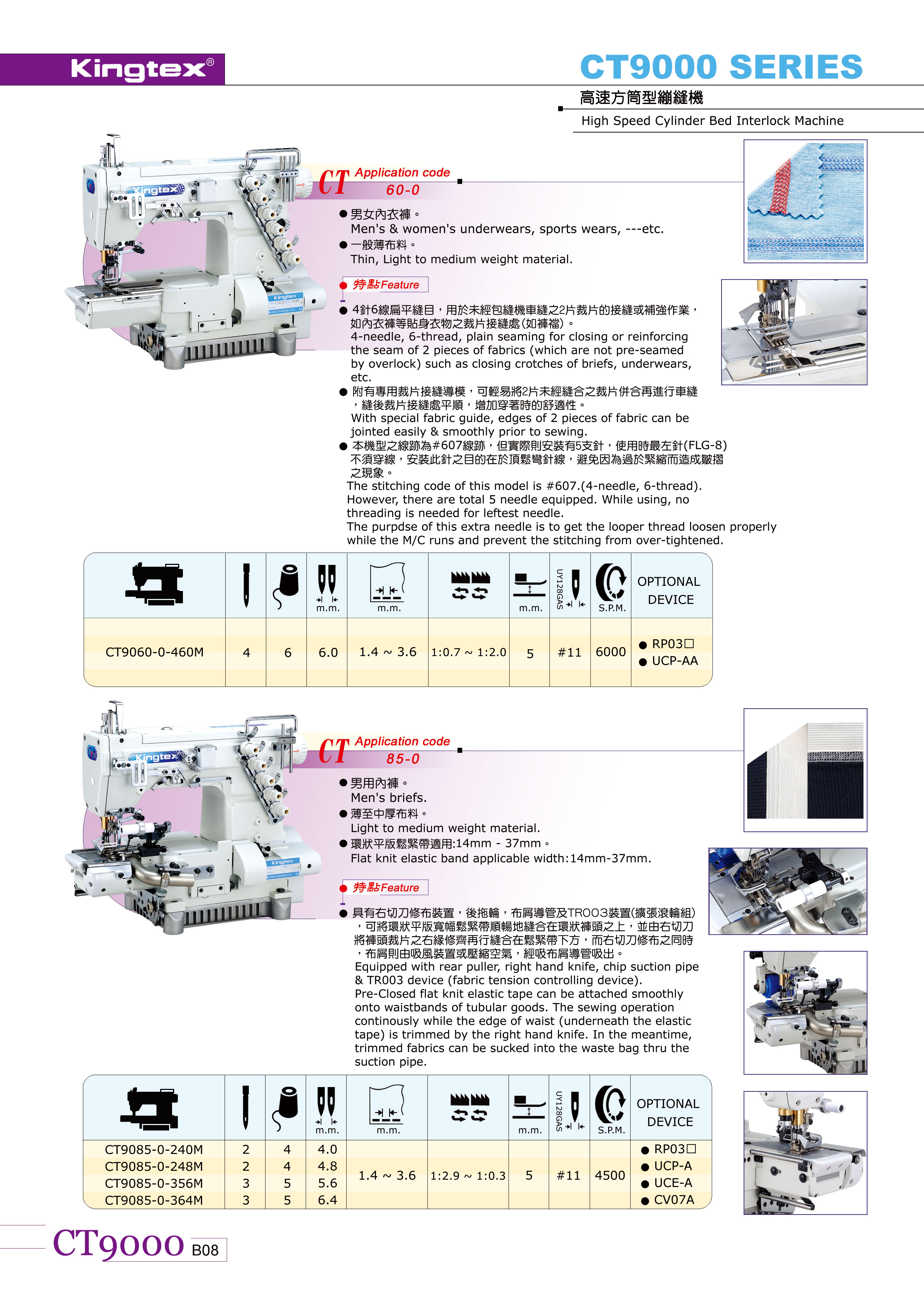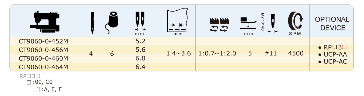 The stitching code of this model is #607.(4-needle, 6-thread). However, there are total 5 needle equipped. While using, no threading is needed for leftest needle.