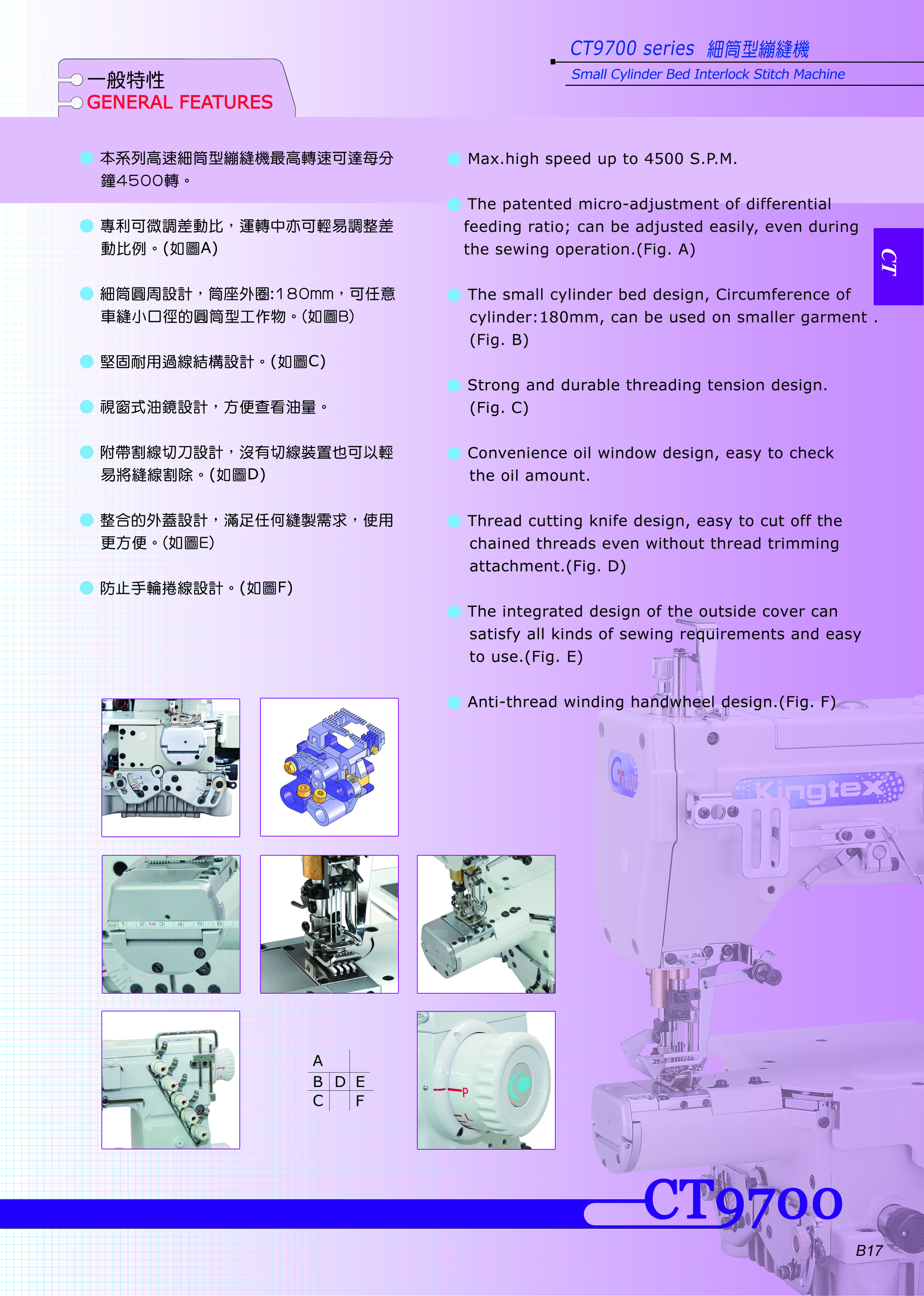 Thread cutting knife design, easy to cut off the chained threads even without thread trimming attachment.(Fig. D)