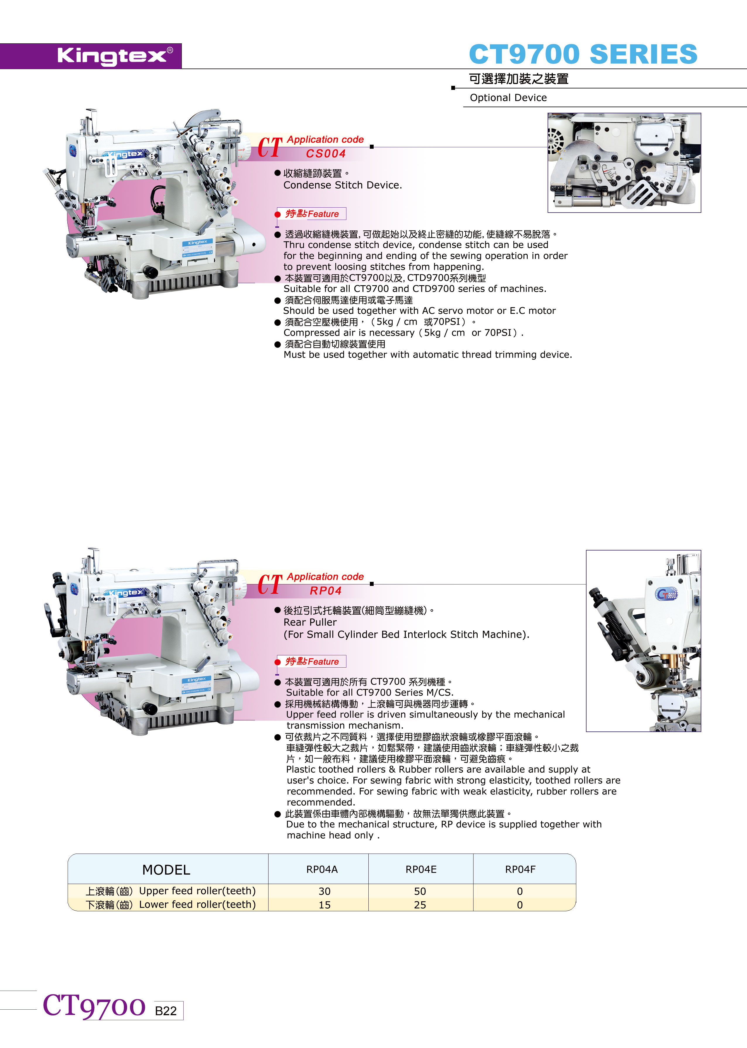 Plastic toothed rollers & Rubber rollers are available and supplied at user's option. For sewing fabric with strong elasticity, toothed rollers are suggested. For sewing fabric with weak elasticity, rubber rollers are suggested.
