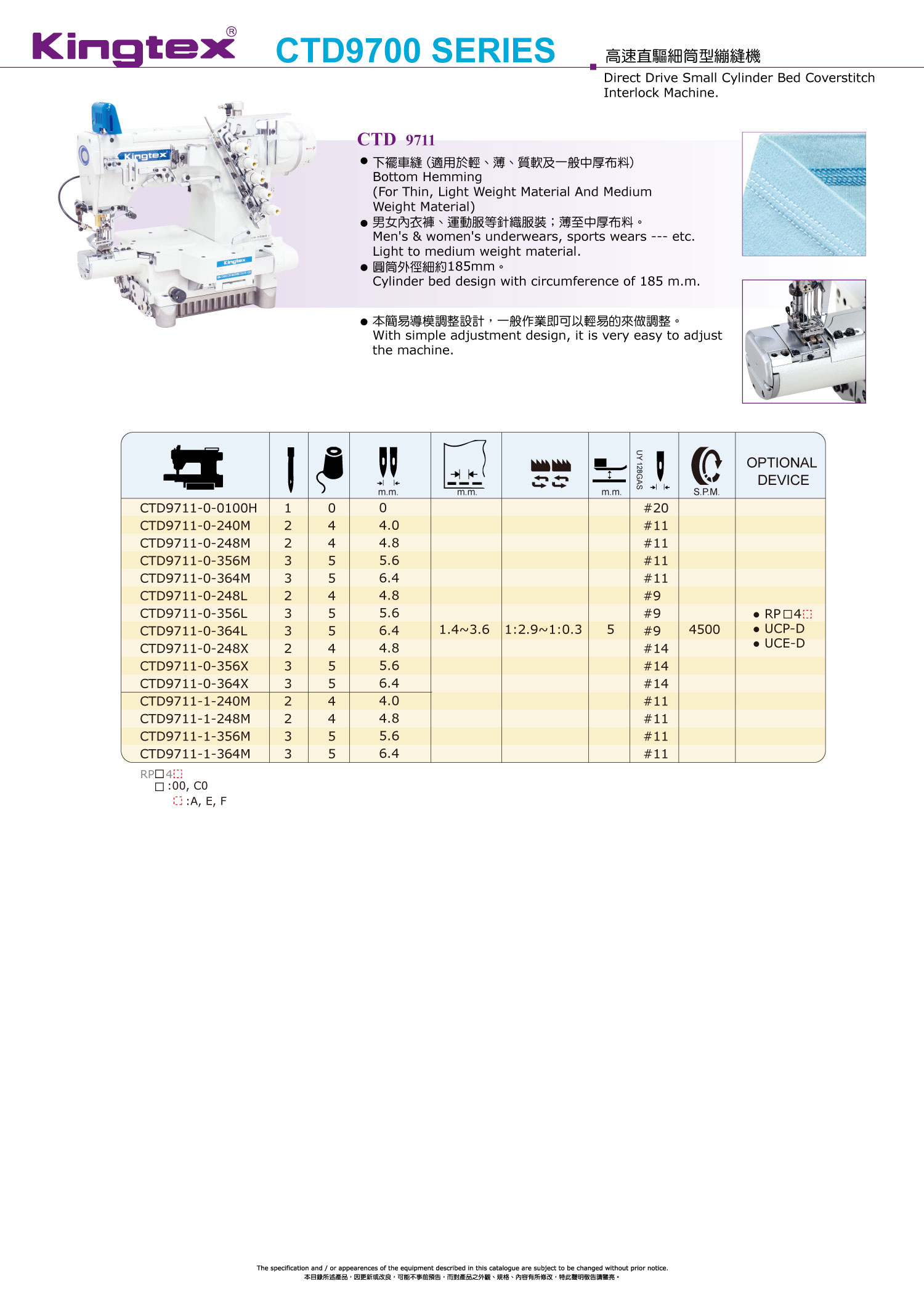 For the hemming of T-shirt Bottom, sleeve, and infant wear, there are 3 kinds of cylinder bed (circumference: 280/ 180/ 110 mm) to meet the demands.