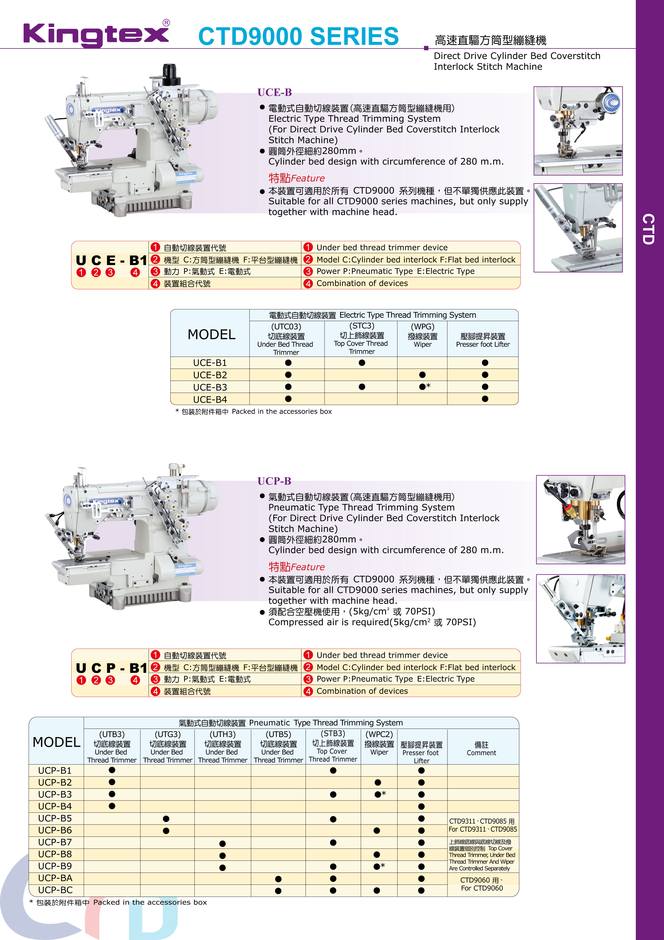 Suitable for all CTD9000 series machines, but only supply together with machine head.
