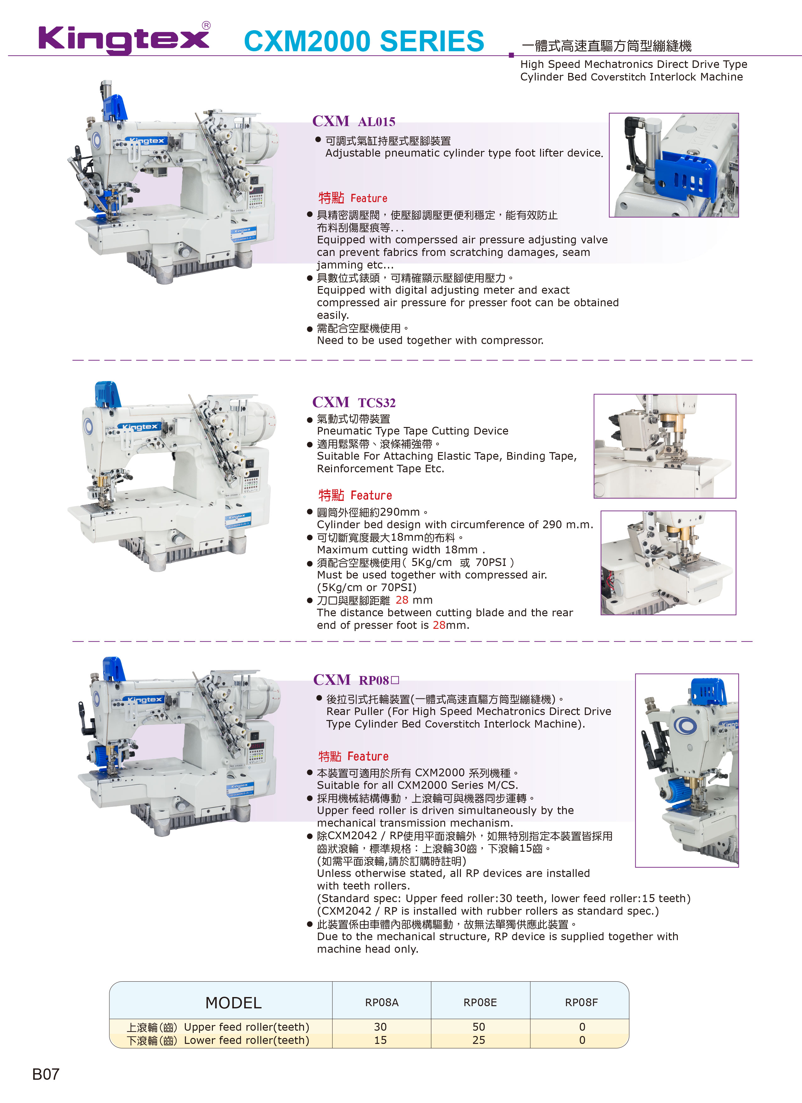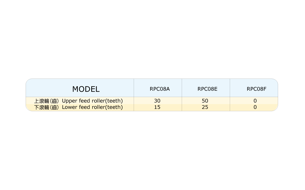 Unless otherwise stated, all RP devices are installed with toothed rollers. (Standard spec: Upper feed roller:30 teeth, lower feed roller:15 teeth)(CXM2042 / RP is installed with rubber rollers as standard spec.)