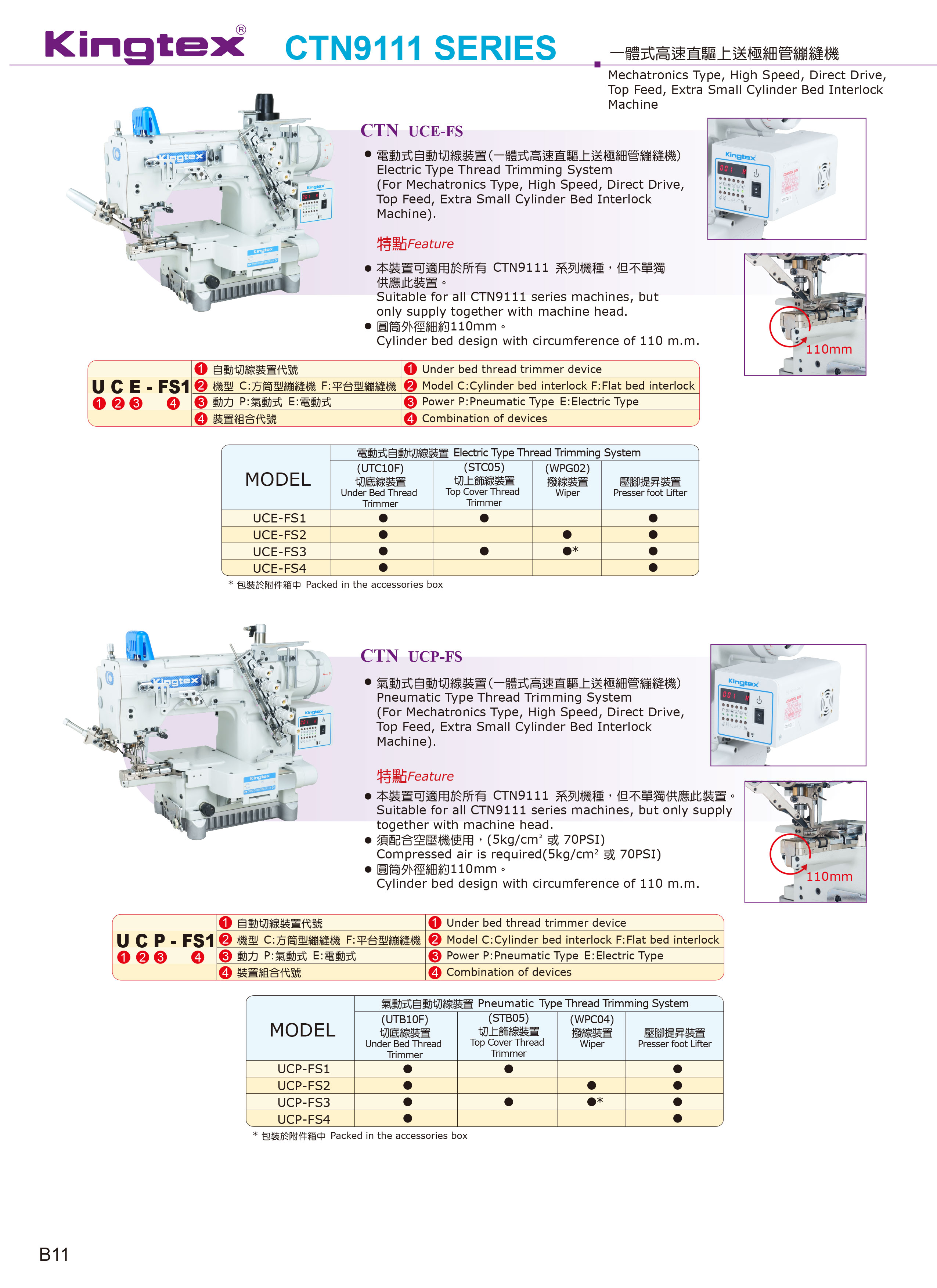 Suitable for all CTN9111 series machines, but only supply together with machine head.