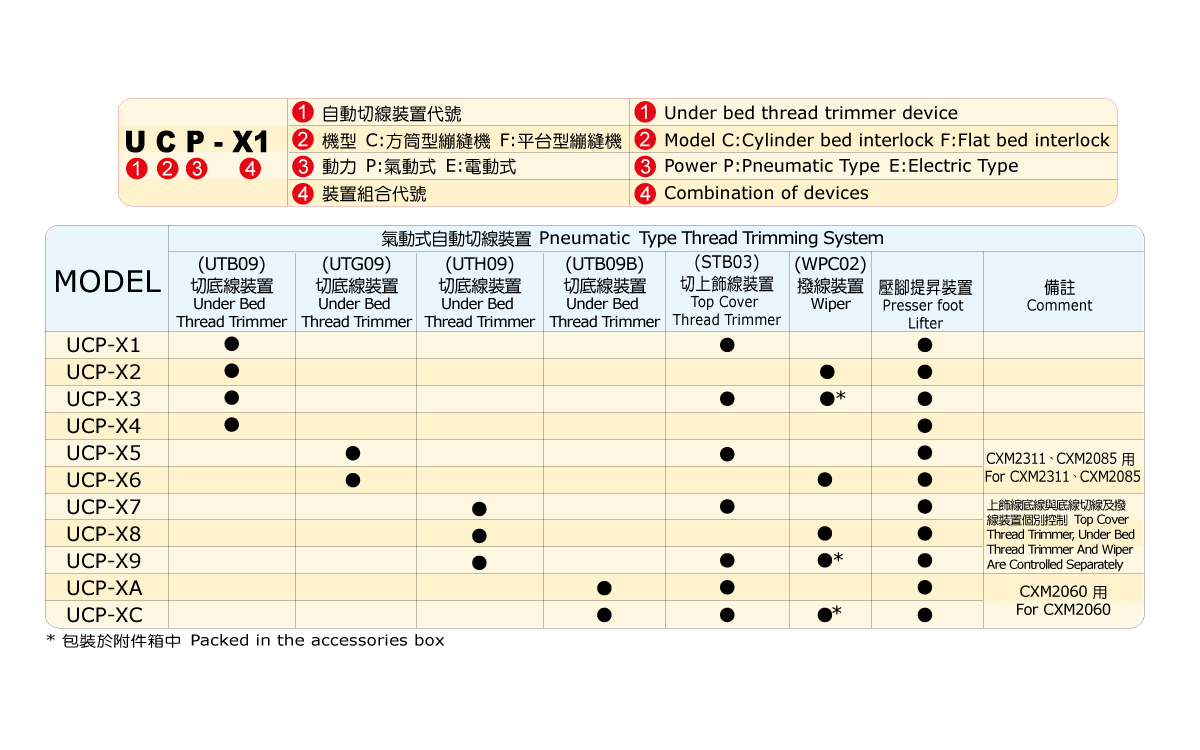 Suitable for all CXM2000 series machines, but only supply together with machine head.