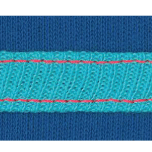 - 2-Needle, 4-thread (without top cover stitch), double chain-stitch machine for attaching reinforcing tape to files of men's briefs. Also applicable to attaching reinforcing tape to left, right shoulders and the rear inside of neck openings of T-shirts.