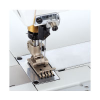 - This model makes double chain stitch, including 2-needle 4-thread and 3-needle 6-thread, which is applicable to tape attaching and lap seaming. TB folder and TC/TCS rear tape cutter are optional for tape attaching. FR fabric guide and KI suction chain cutter is optional for lap seaming.