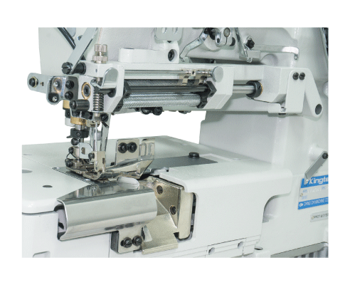 - The machine is equipped with right edge trimmer, which can trim the fabric edge to align the tape. Two sewing types: Tape attaching / Fine tape binding.