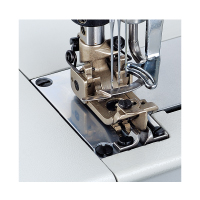 With overlock seam covering attachment, specially for covering (folding over) overlock seams. And the overlock seams can be folded over at the same side and fastened off on the fabric. Such as overlock seams on the neck opening, sleeve cuff of T-shirt, sports wear and underwear --- etc.