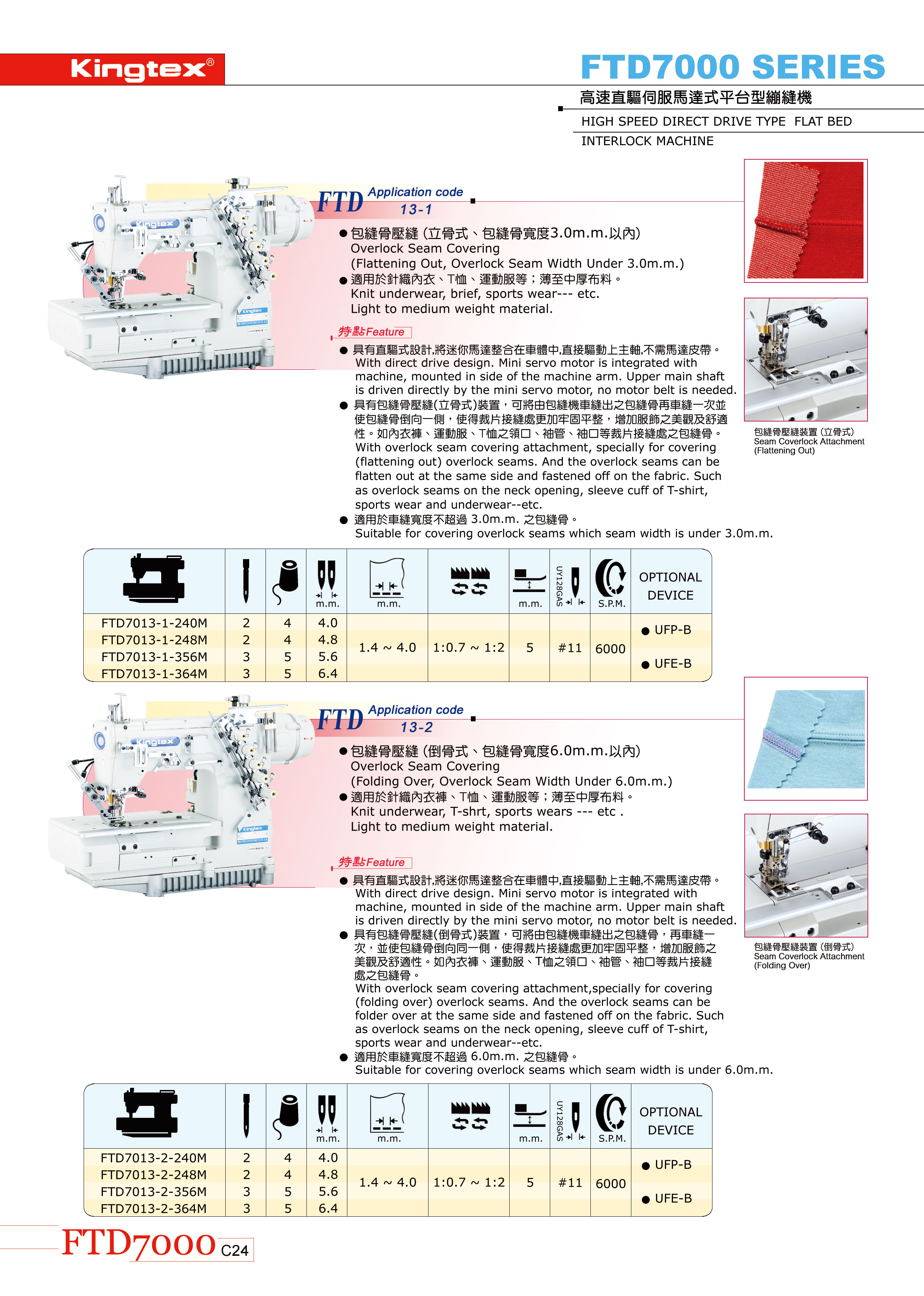 With overlock seam covering attachment, specially for covering (Flattening Out) overlock seams. And the overlock seams can be folded over at the same side and fastened off on the fabric. Such as overlock seams on the neck opening, sleeve cuff of T-shirt, sports wear and underwear --- etc.