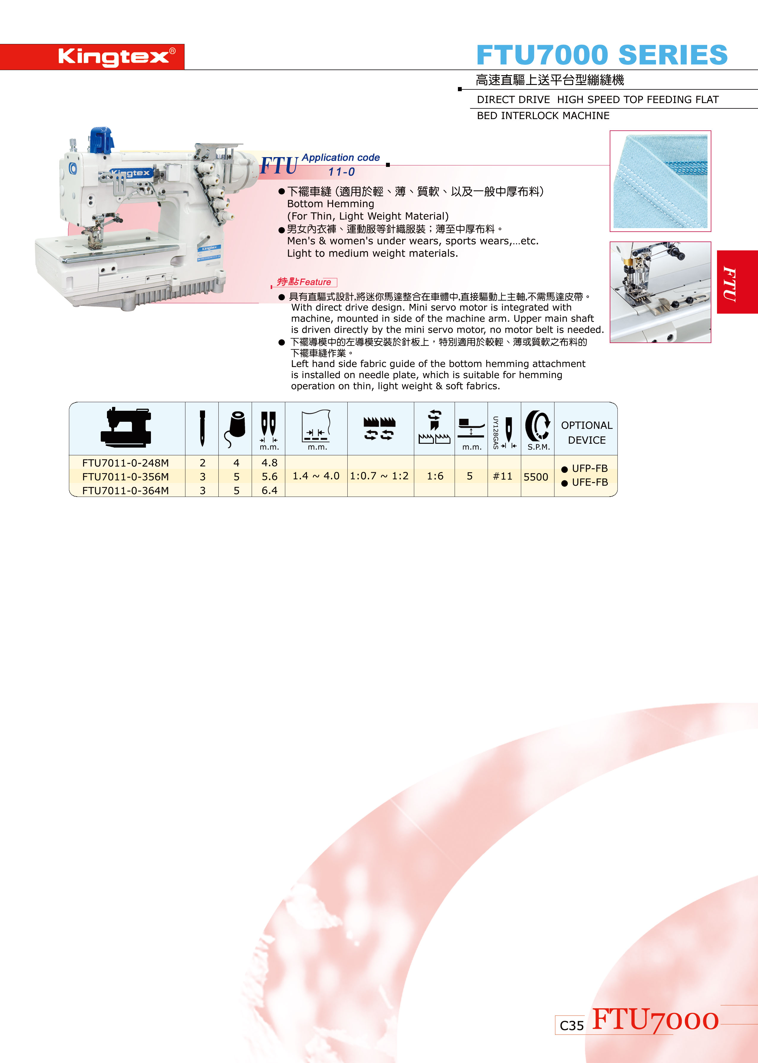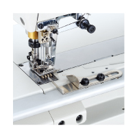 Left hand side fabric guide of the bottom hemming attachment is installed on needle plate, which is suitable for hemming operation on thin, light weight & soft fabrics.