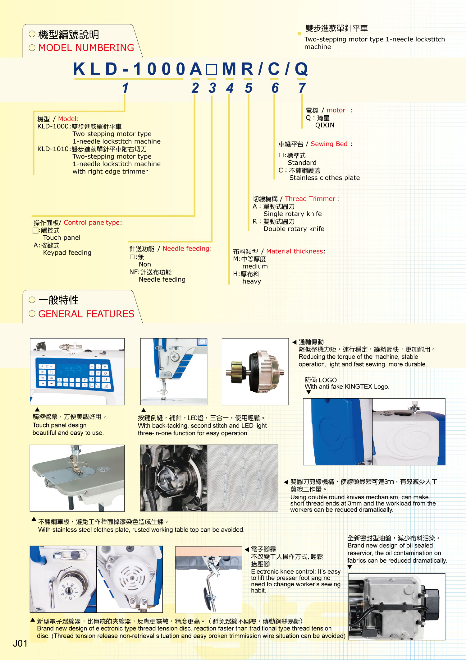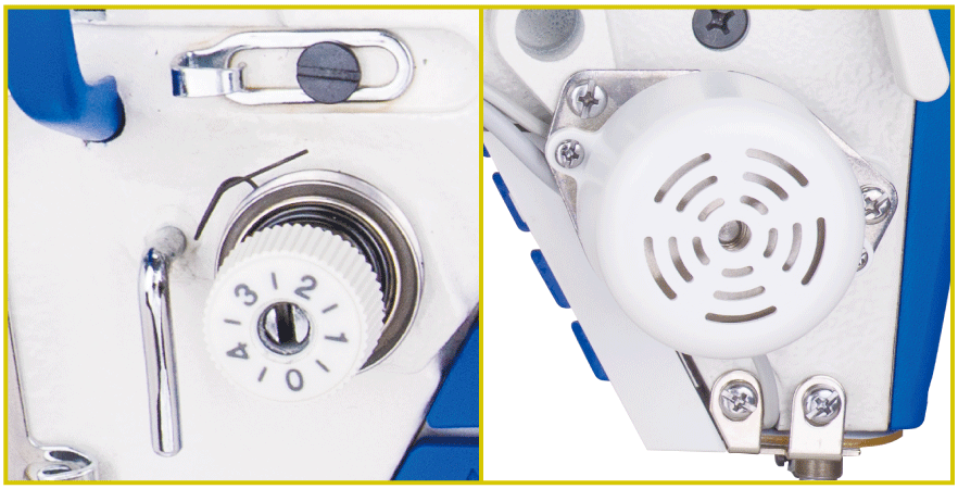 - h Electronic knee control: It’s easy to lift the presser foot ang no need to change worker’s sewing habit.