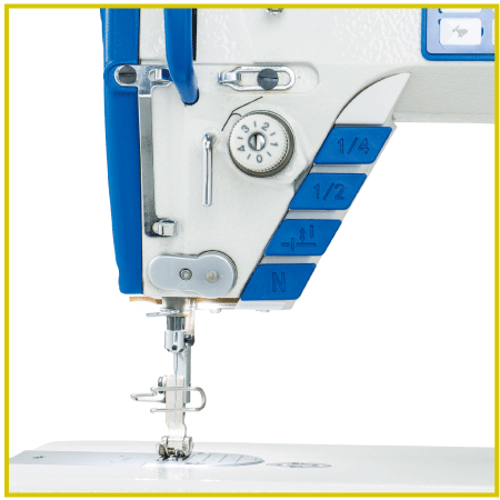 - b With back-tacking, second stitch and LED light three-in-one function for easy operation.