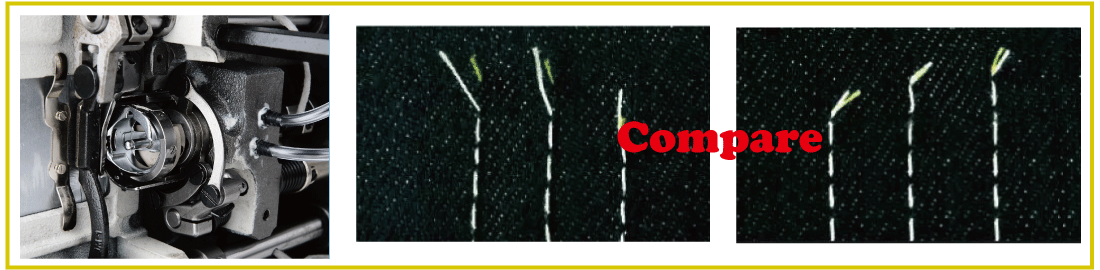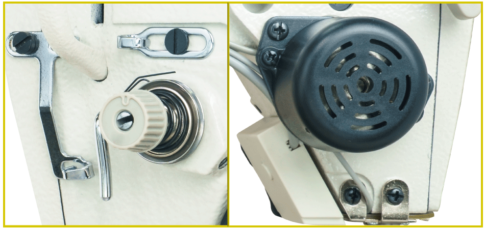 - f Brand new design of electronic type thread tension disc. reaction faster than traditional type thread tension disc. (Thread tension release non-retrieval situation and easy broken trimmission wire can be avoided)