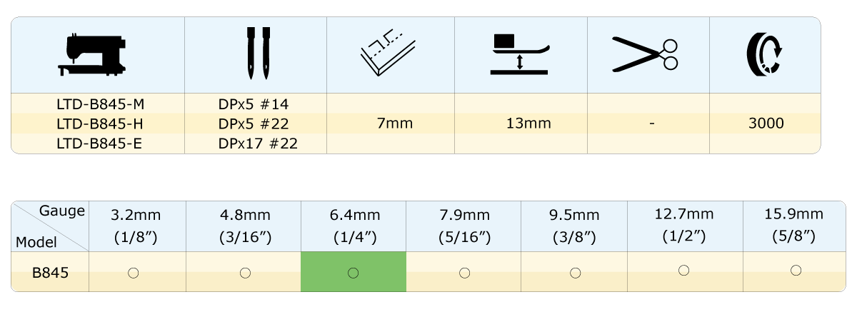 B845-M Thin and medium-thick materials.