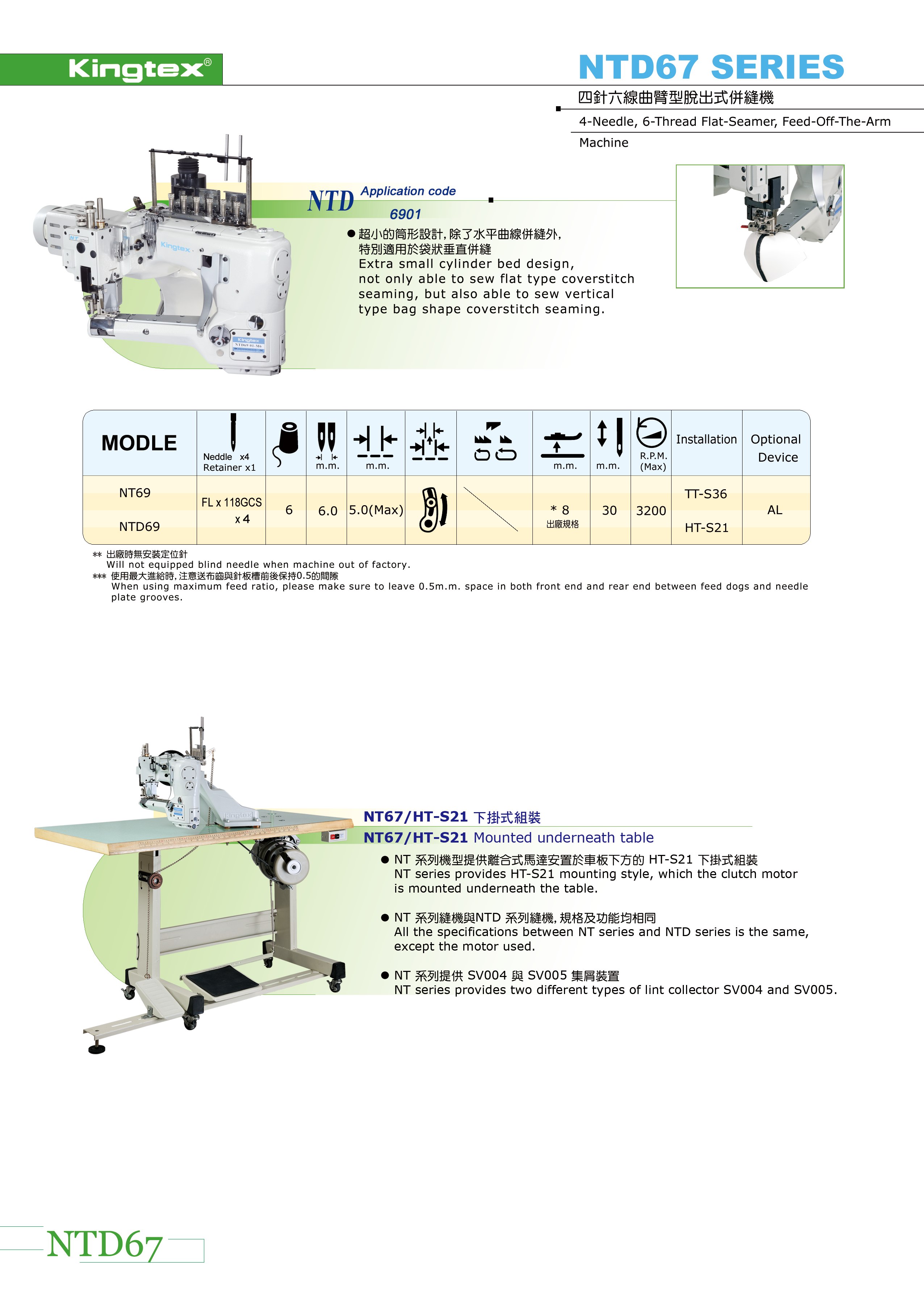 NT series provides HT-S21 mounting style, which the clutch motor is mounted underneath the table.