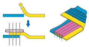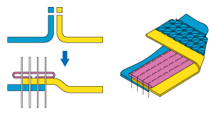 03A : Two sides cut without top coverstitch, equipped with wide knife for attaching binging tape on joint seam