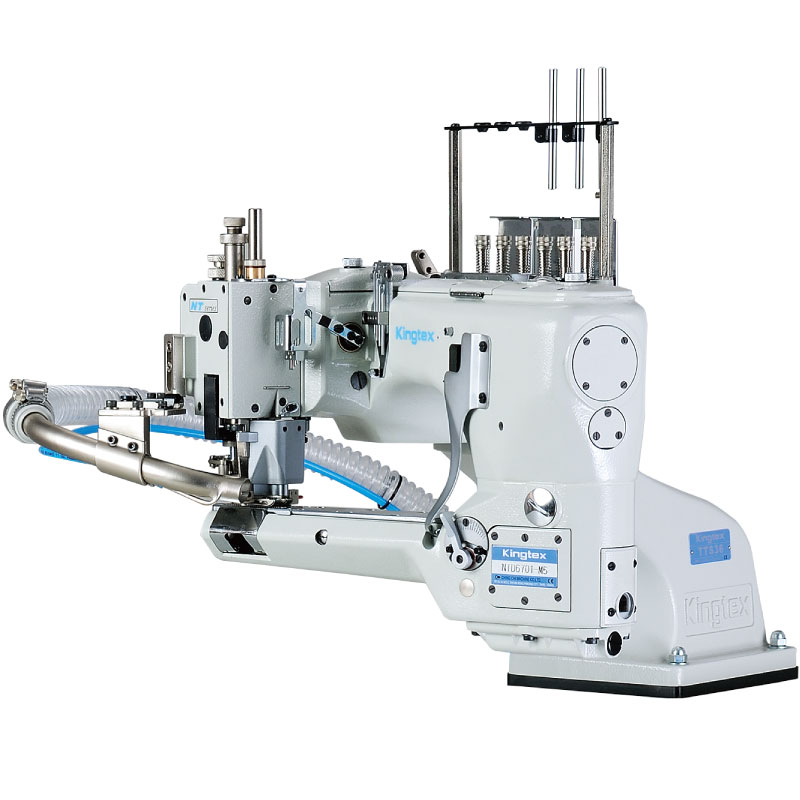 Two top coverstitch threads can be used with two different colors for beautiful, new and novelty looks.(zebra stitches)