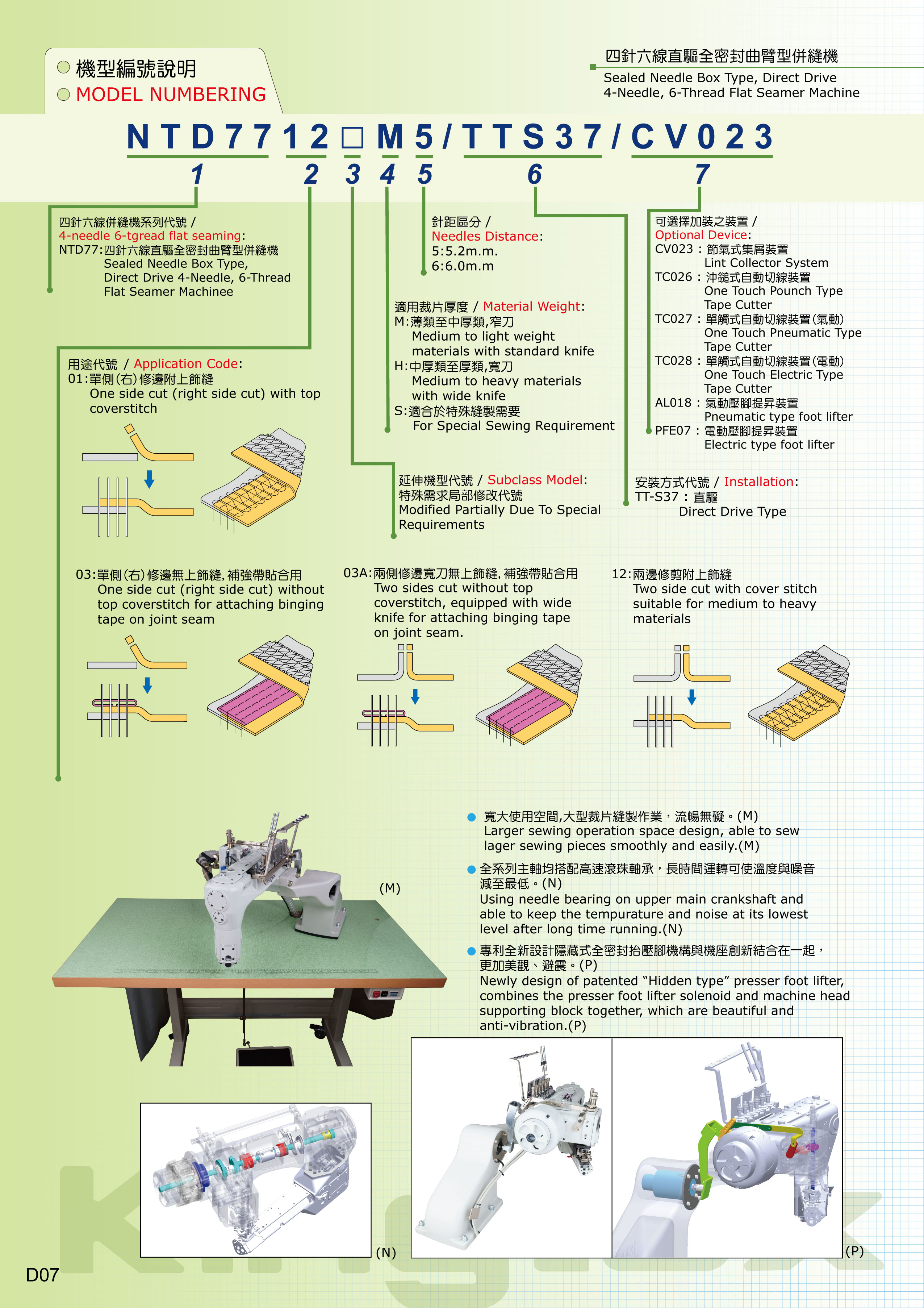 NTD77 : Sealed Needle Box Type, Direct Drive 4-Needle, 6-Thread Flat Seamer Machinee