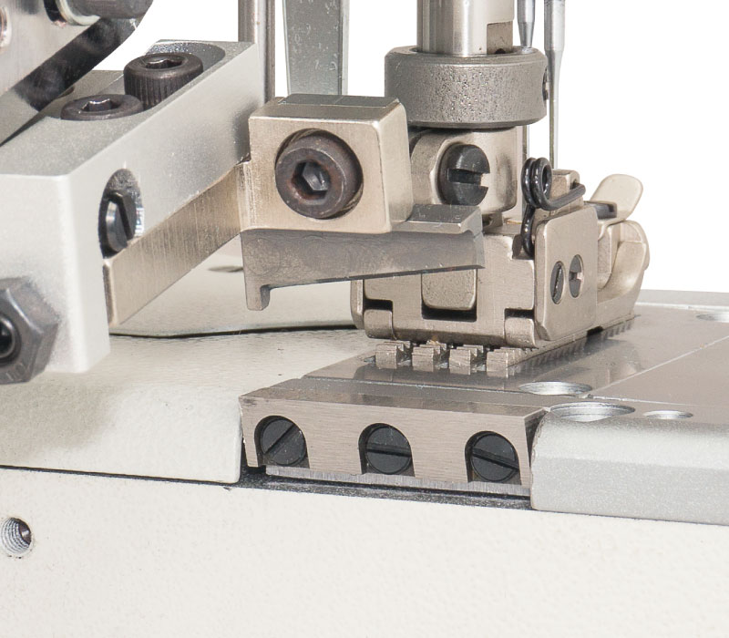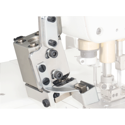The knife is installed behind the needle plate. At the end of sewing, TC device cuts the tape or thread chain. Many product packages are available with sensors, manual switch, knee switch, pneumatic and solenoid type actuator..., etc. |