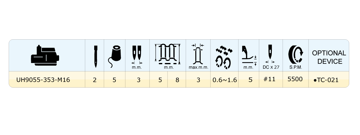 With binding attachment.Suitable for taping the edges of bages of trousers, jackets, etc.