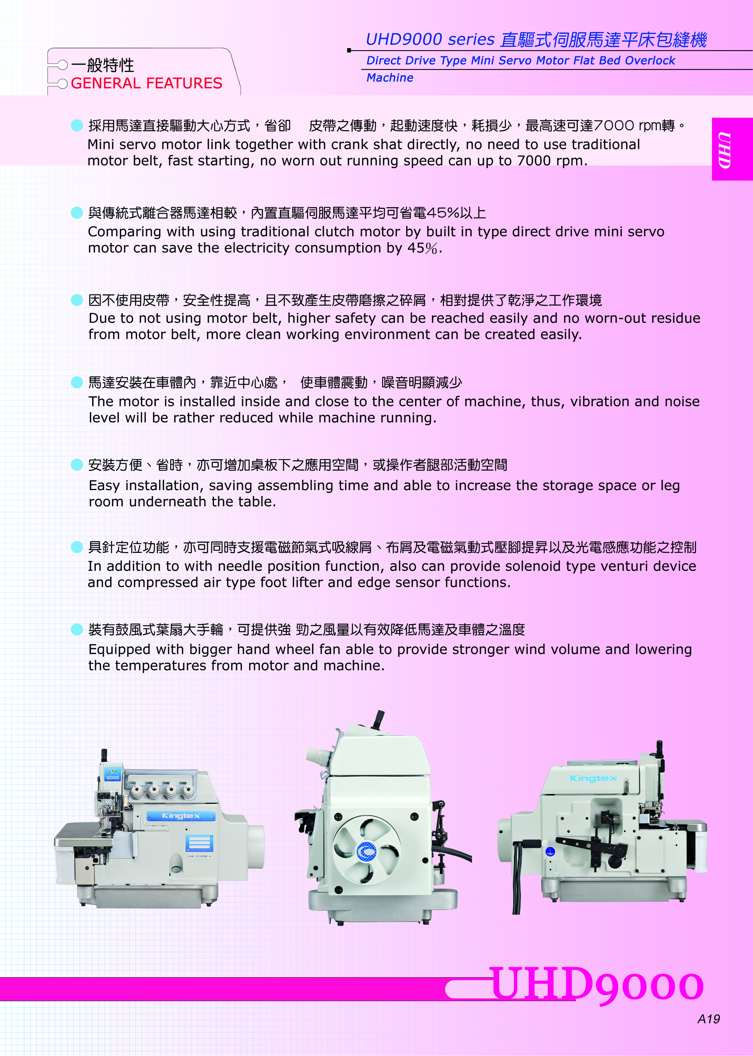 The motor is installed inside and close to the center of machine, thus, vibration and noise level will be rather reduced while machine running.