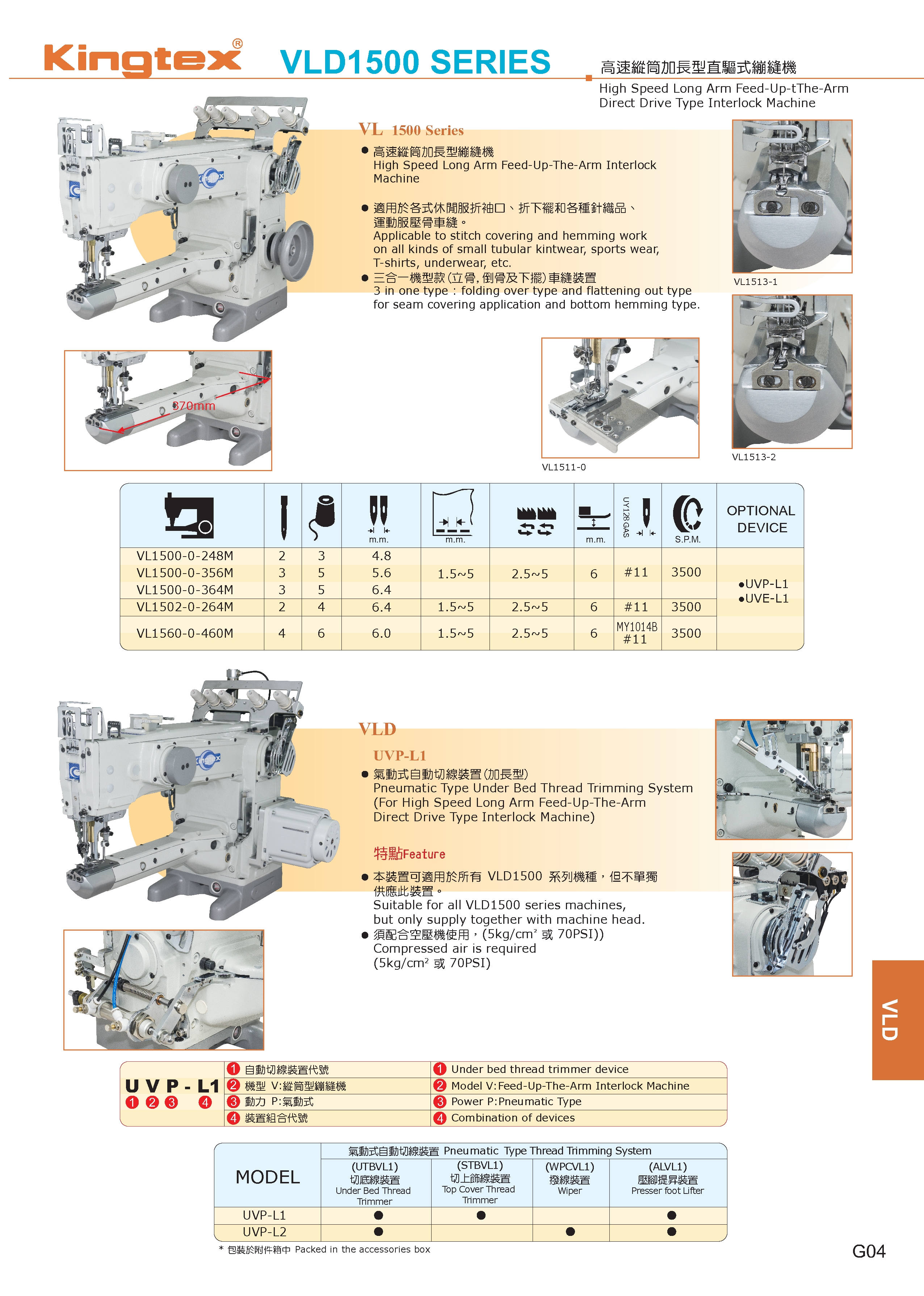 Suitable for all VLD1500 series machines, but only supply together with machine head.