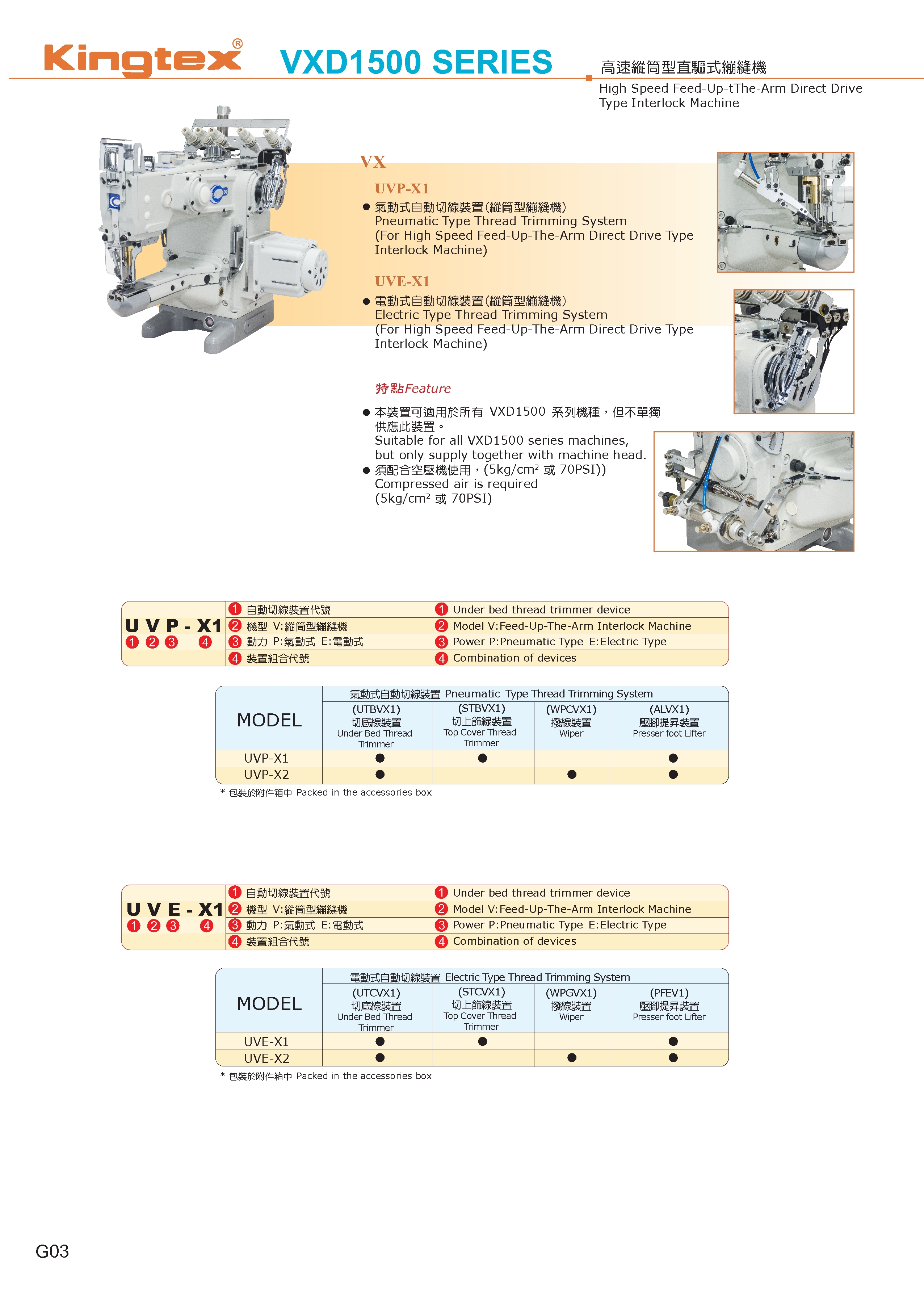 Suitable for all VXD1500 series machines, but only supply together with machine head.