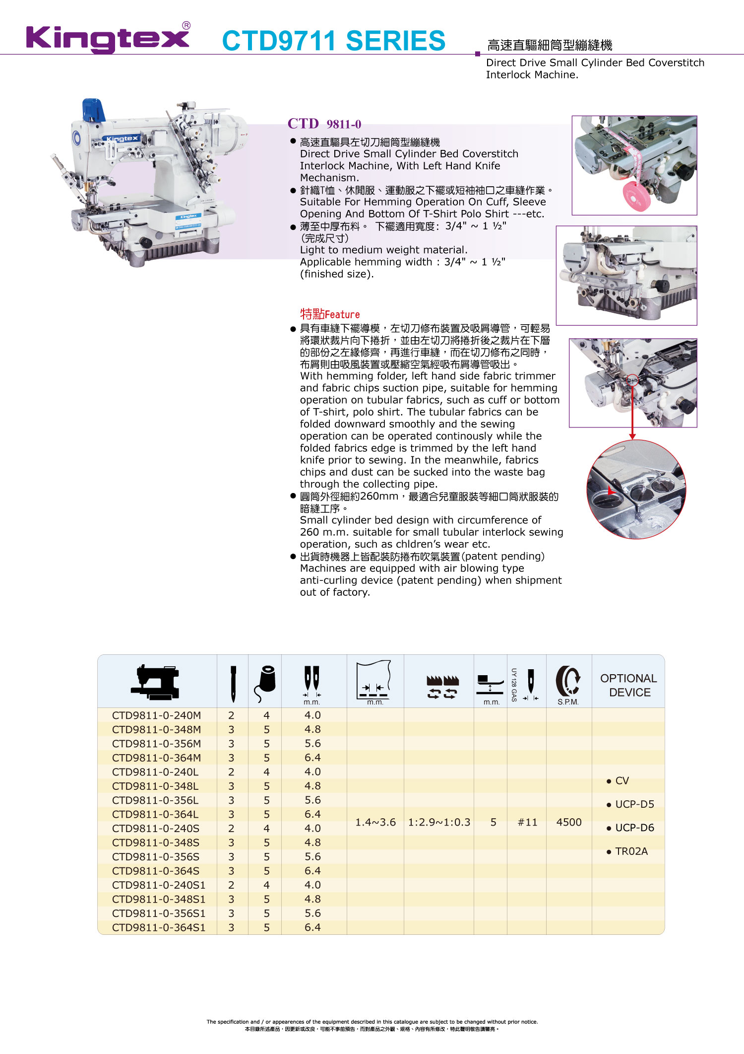 CTD9811-0-240L | 2 | 4 | 4.0 | 1.4~3.6 | 1:0.3~1:2.9 | 5 | #11 | 4500 | |
