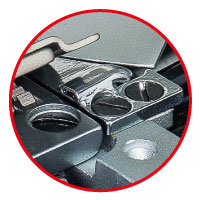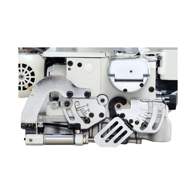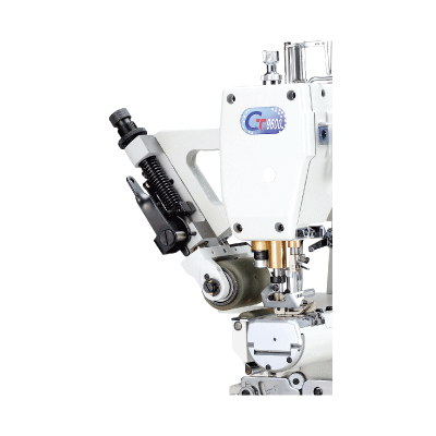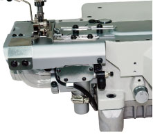 - 具有車縫下襬導模,左切刀修布裝置及吸屑導管,可輕易將環狀裁片 向下捲折,並由左切刀將捲折後之裁片在下層的部份之左緣修齊,再 進行車縫,而在切刀修布之同時,布屑則由吸風裝置或壓縮空氣經吸 布屑導管吸出。