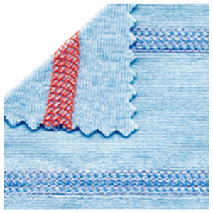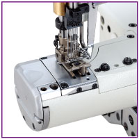 - 附有專用裁片接縫導模,可輕易將2片未經縫合之裁片併合再進行車縫 ,縫後裁片接縫處平順,增加穿著時的舒適性。