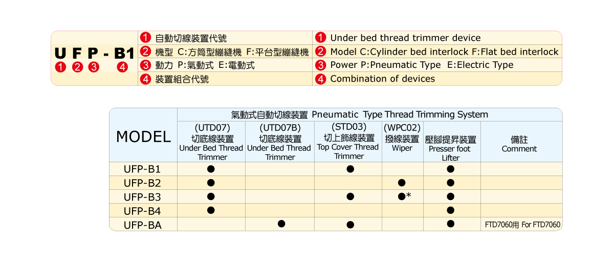 UFP-B 氣動式自動切線裝置 (直驅平台型繃縫機用)