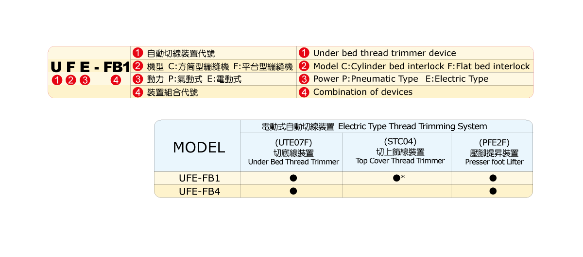 UFE-FB 電動式自動切線裝置 (直驅上送平台型繃縫機用)