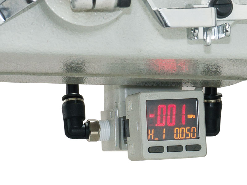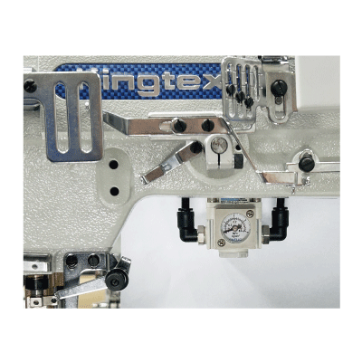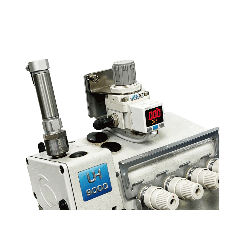 具精密調壓閥,壓腳的壓布力可精準設定,當車縫中面料厚度改變時,壓力保持穩定不變。