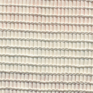 - 底線為彈性橡筋線,以壓腳底的段差,配合PMD02控制底線張力,產生皺摺樣式。