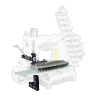 - 配備專用導布器,適用於摺布裝飾縫。