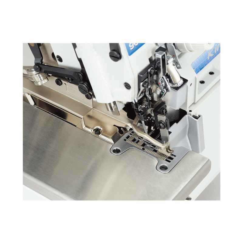 特殊之傳動機構係為車縫特厚布料而專門設計,如厚牛仔褲,厚工作服等之車縫作業,可輕易車縫8層14盎司的牛仔布(如牛仔褲之褲襠接合處)。