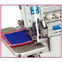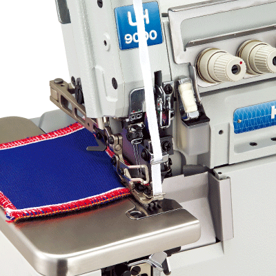 - 厚毛衣與厚針織布料適用規格,配備寬刀與 TB005 布帶導片,車縫時可加入補強帶以防止毛衣鬆弛變形。最大帶寬5 mm (1/5”)
