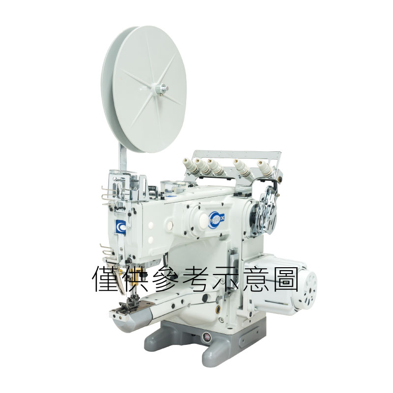 - 補強帶車縫 (2針4線、雙勾針、雙鏈縫目) (加長型)。